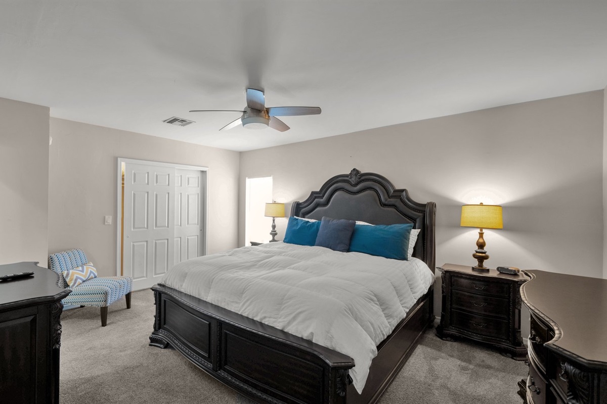 Indoors the home appeals to small and large groups. The floor-plan is very spacious and functional. There are a total of five bedrooms and 3.5 bathrooms. When it comes to taking a nap or hanging it up for the night, you will enjoy the comfort of all new beds and linens in every bedroom (two master suites). A good night's sleep makes a better vacation right?