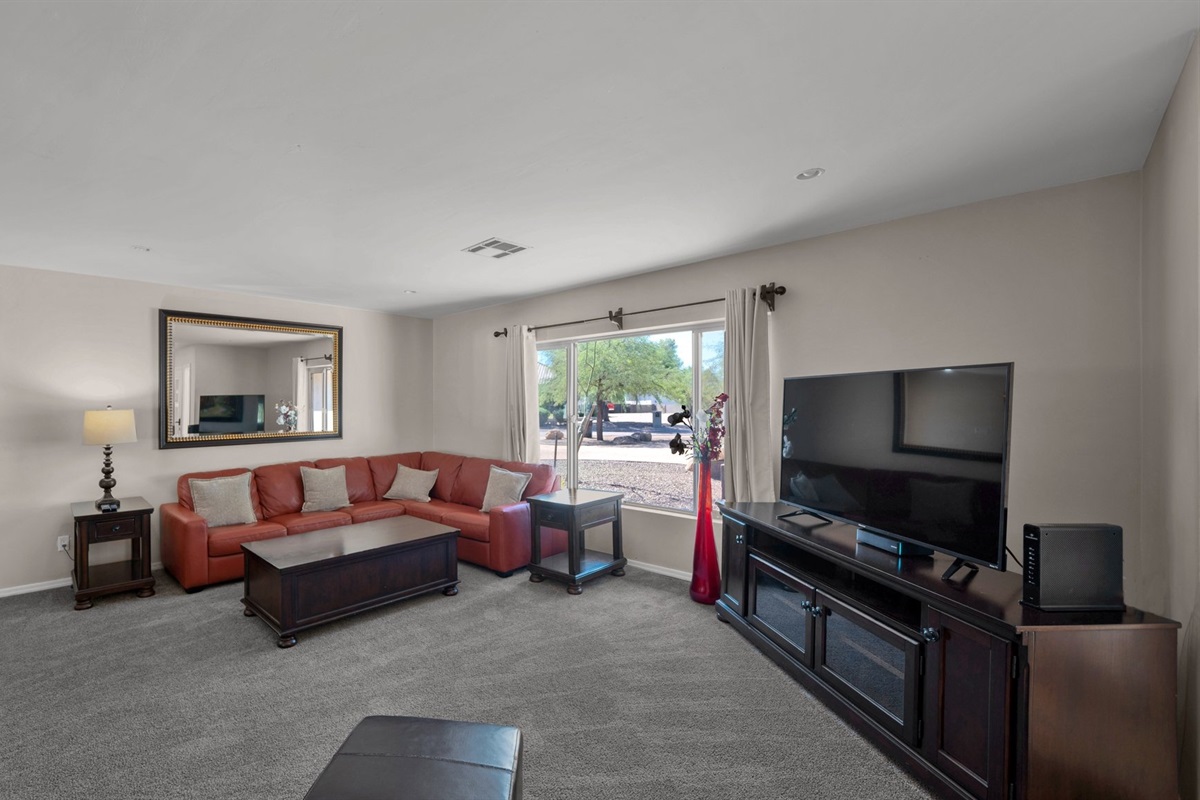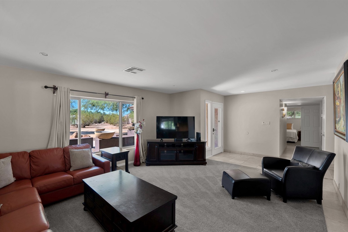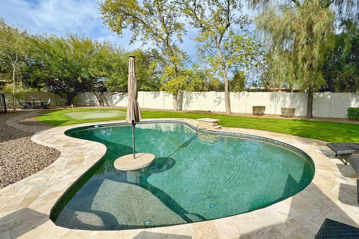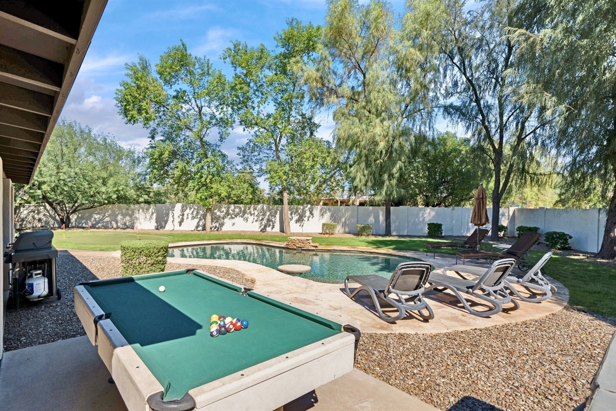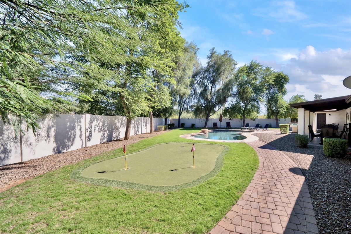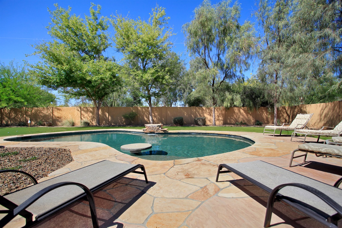 With plenty of bedrooms and a private backyard on an acre lot, this 5BR 3.5BA home is everything you need. Outdoors you will have the luxury of relaxing in the six person spa or taking a dip in the heated pool (additional cost). Large trees surround the backyard; therefore, you will have plenty of privacy to relax and enjoy the sun. The home offers an expansive covered patio, resort style pool, putting green, lush backyard and RV parking.