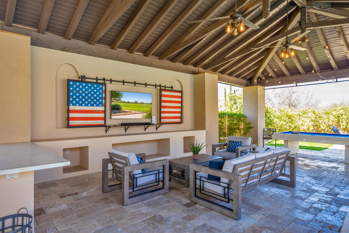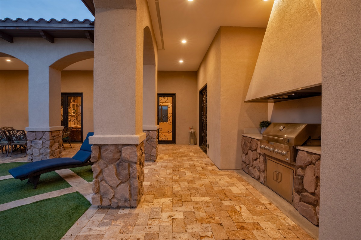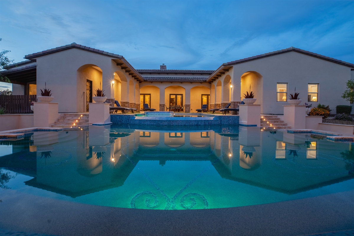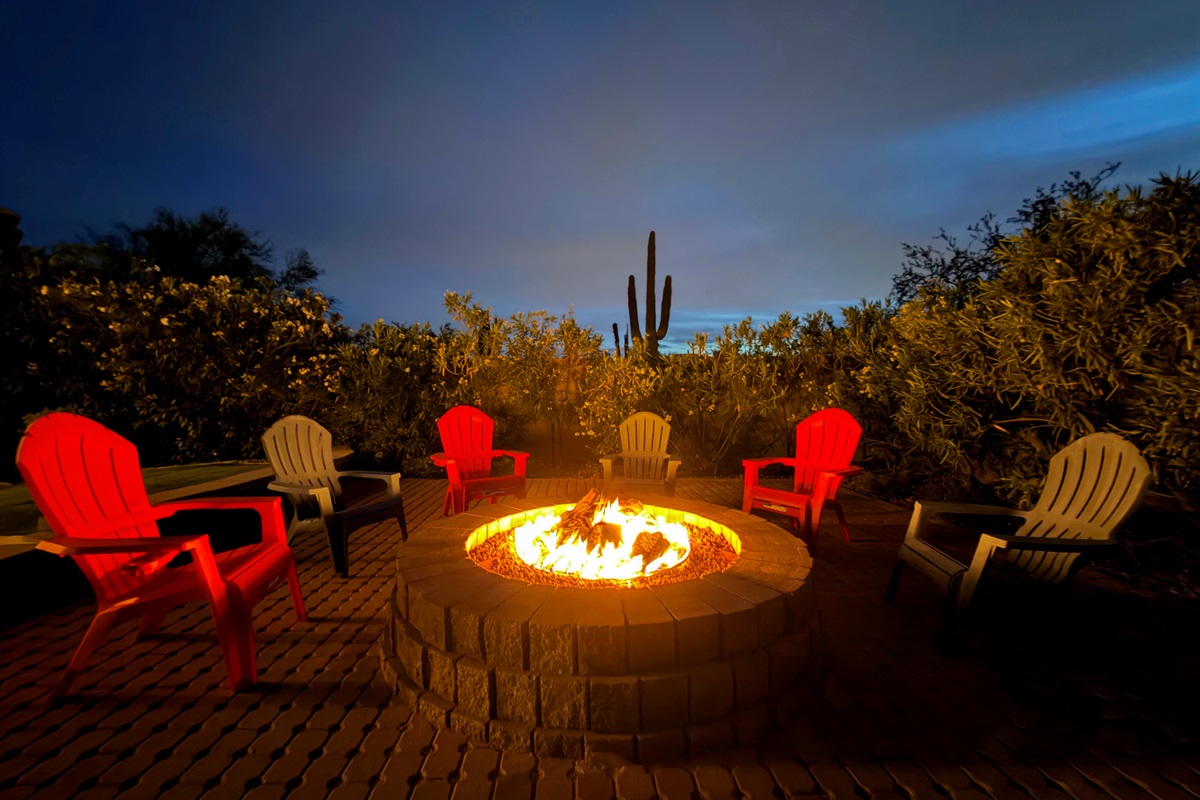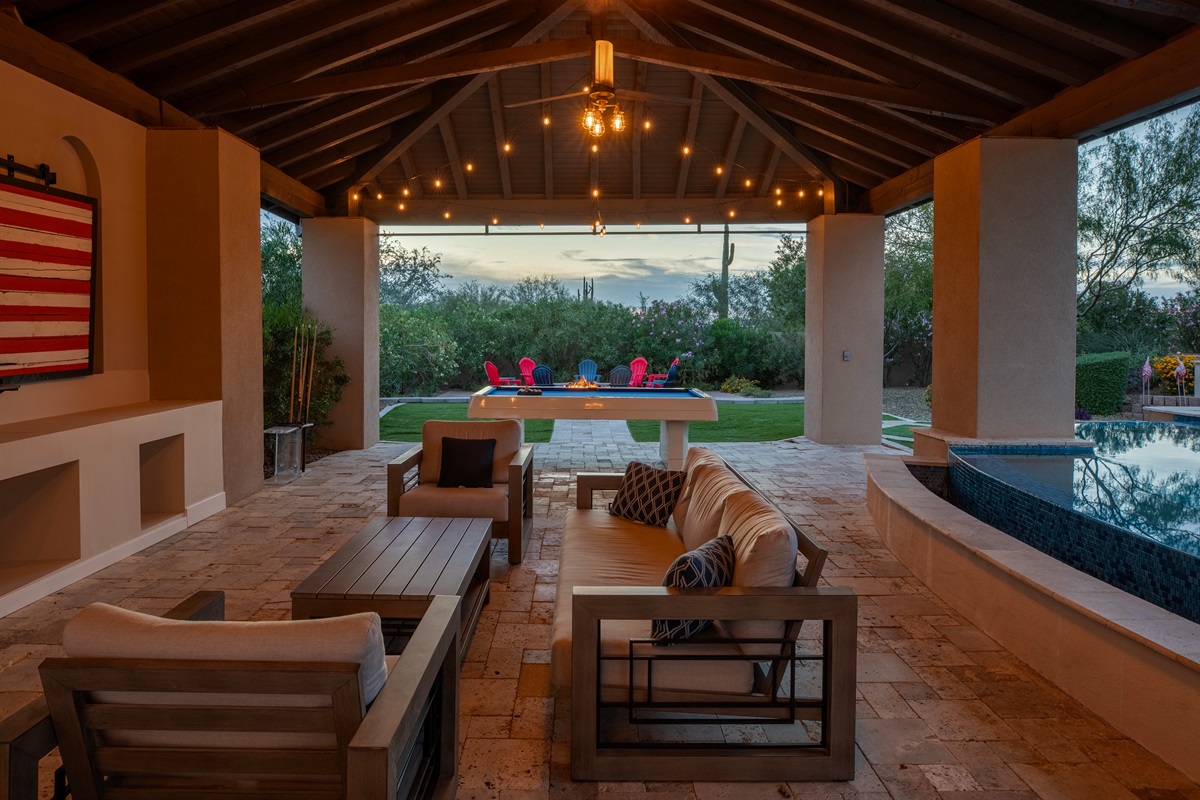The home’s 2.5 acre property in the prestigious North Scottsdale community provides additional privacy and seclusion, making the backyard feel like your own private resort. Dine al fresco on the covered patio, cooking up your meals on one of the two natural gas built in BBQs that are available to our Guests. Nothing competes with our 3 tier/360 degree negative edge heated pool with Spa (additional cost for pool/spa heat).