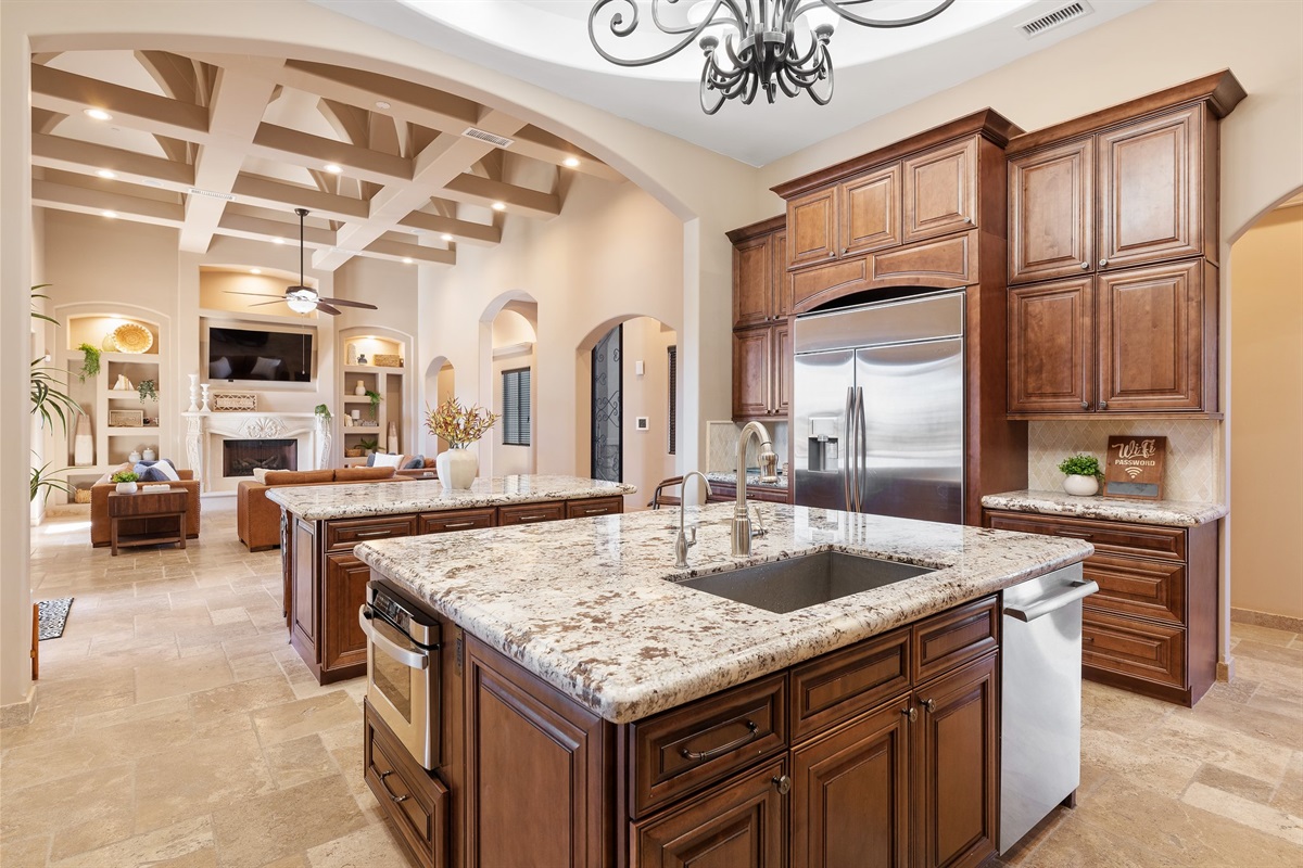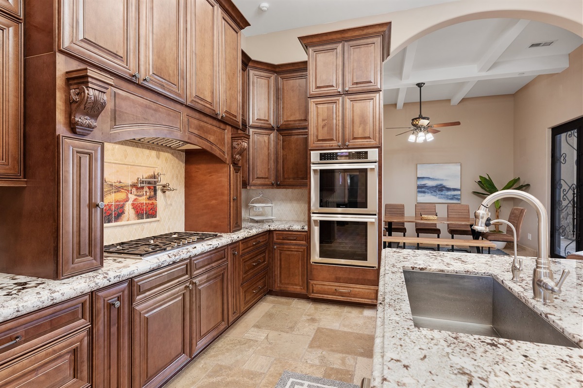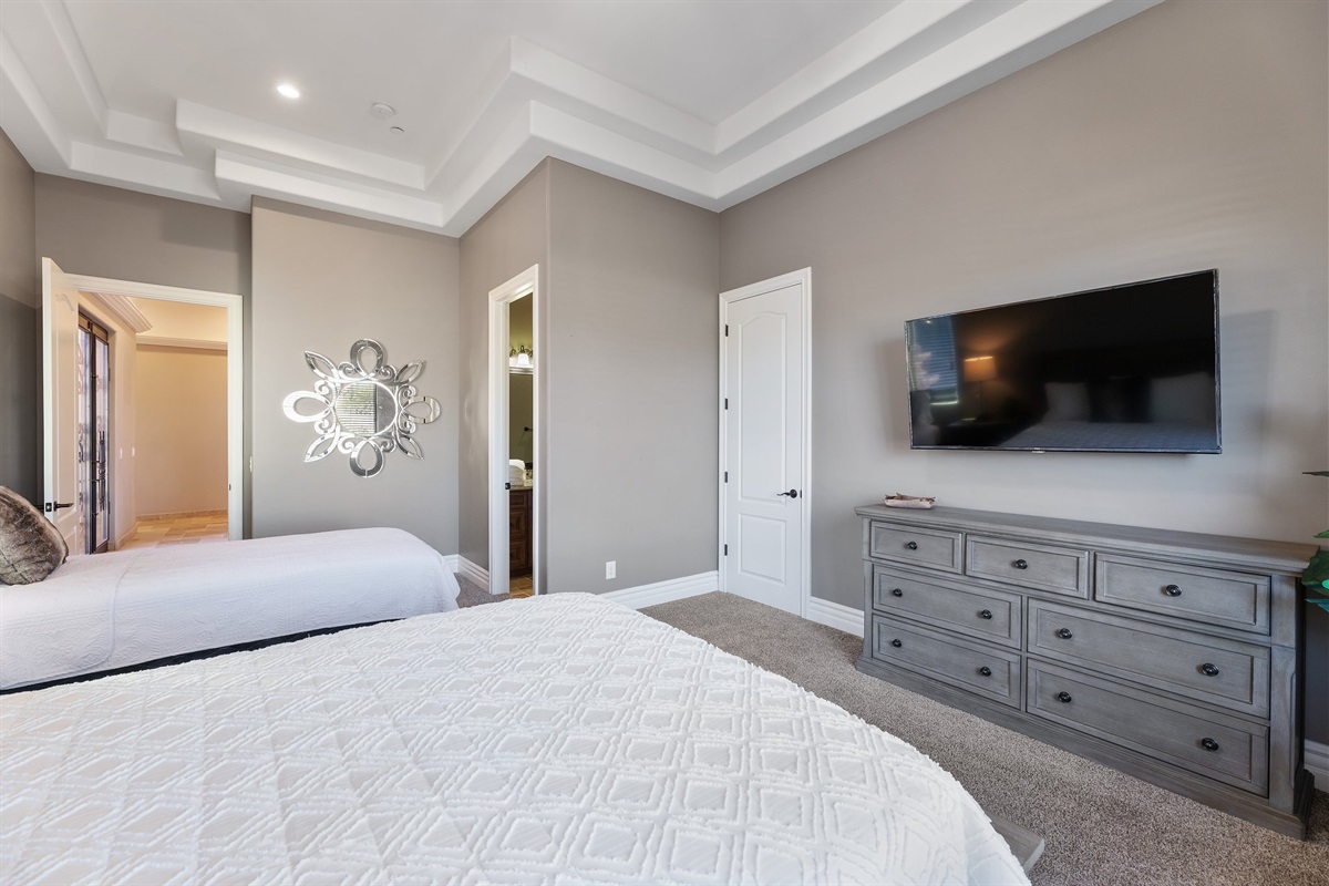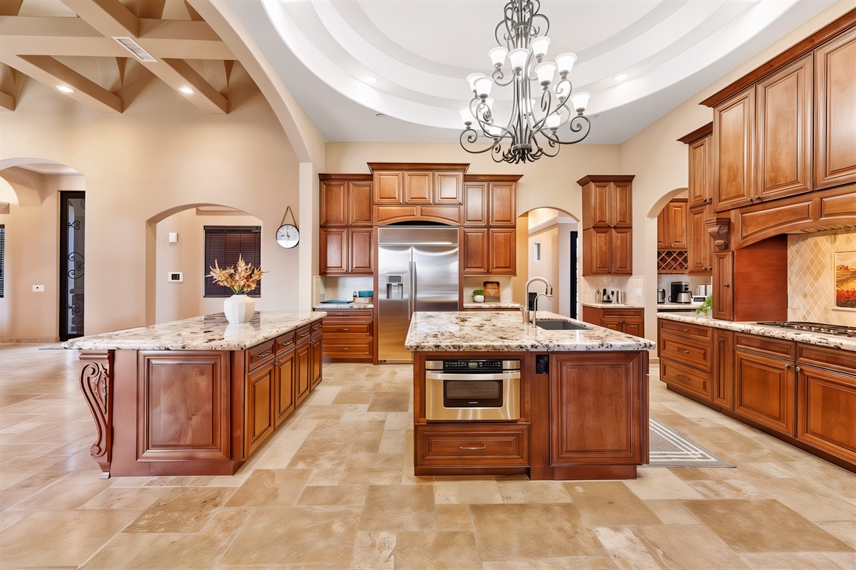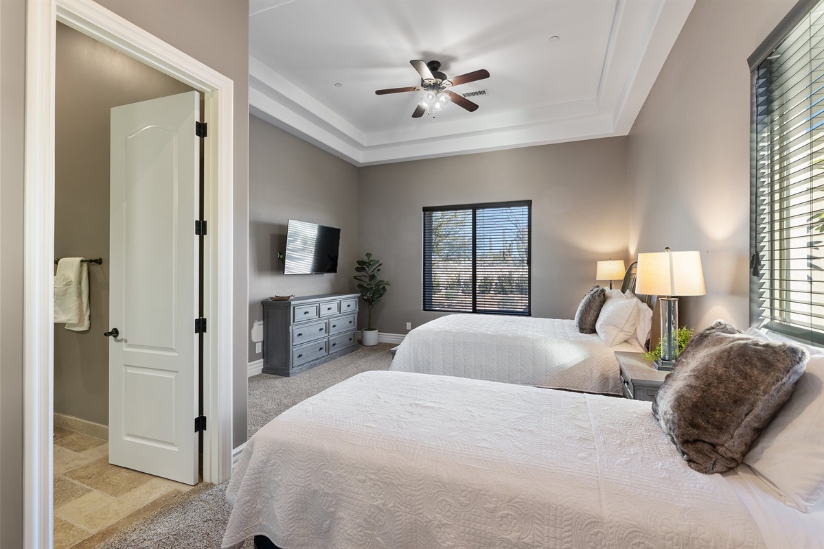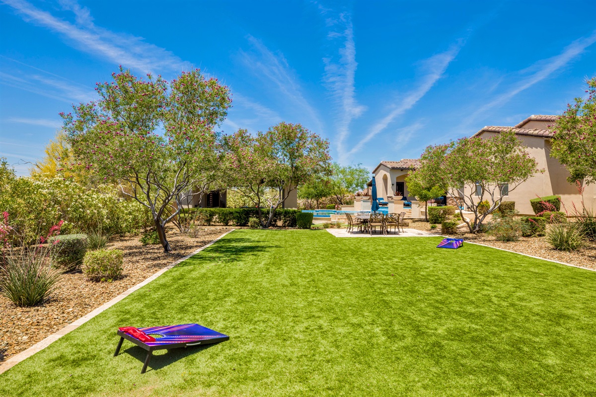 The home’s 2.5 acre property in the prestigious North Scottsdale community provides additional privacy and seclusion, making the backyard feel like your own private resort. Dine al fresco on the covered patio, cooking up your meals on one of the two natural gas built in BBQs that are available to our Guests. Nothing competes with our 3 tier/360 degree negative edge heated pool with Spa (additional cost for pool/spa heat).