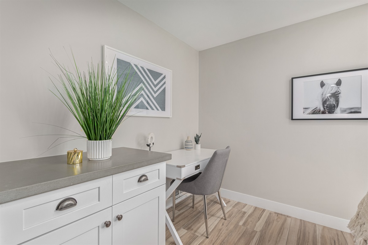 This residence is an ideal choice for the ultimate game night! The garage has been transformed into a dedicated playroom, complete with a pool table, foosball table, air hockey, and ping pong. Get ready to engage in friendly competitions with friends and family, all within the cozy confines of your own home.