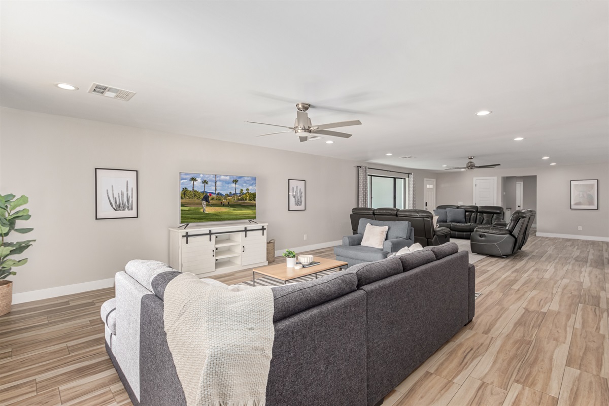This home is exactly what we wanted. Extremely nice - two master bedrooms with en suite bath + 3 additional bedrooms easily accommodate two families. The pool and spa, yard, basketball court, garage with games = amazing.
