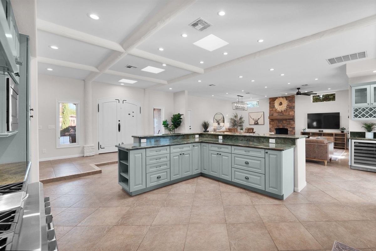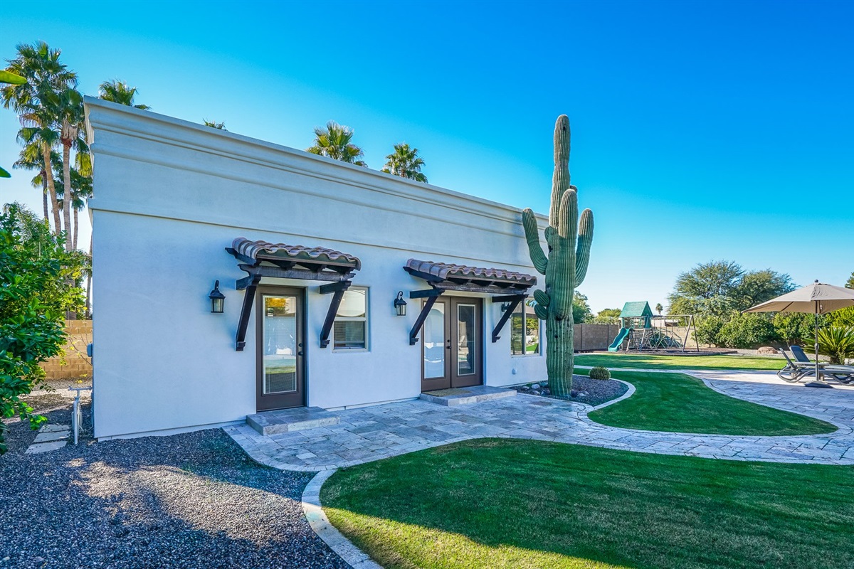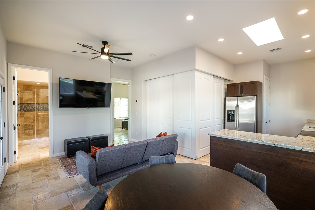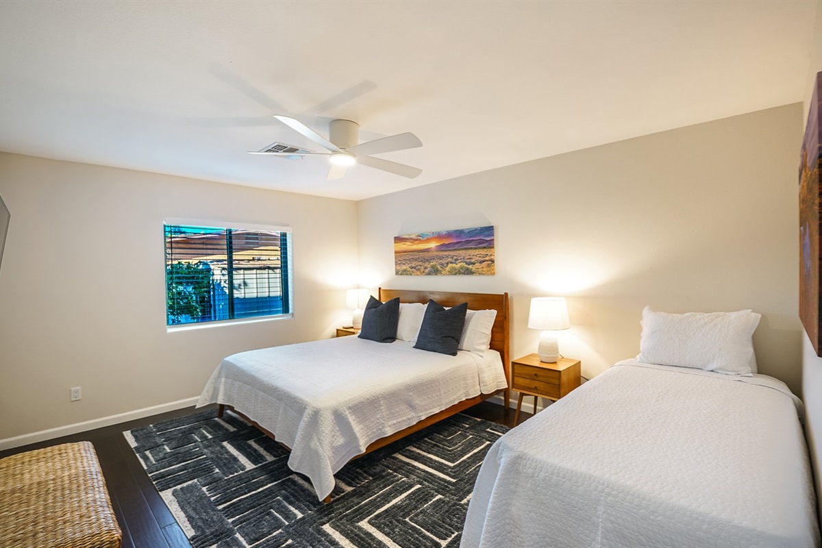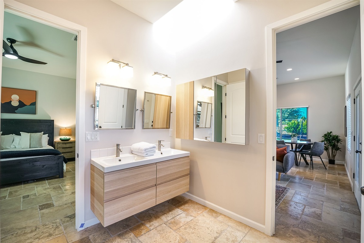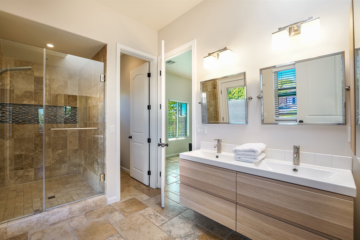 Everything is new here...furniture, beds, spa etc. We carefully designed this home to comfortably accommodate small or larger groups. The main home offers three bedrooms and two full bathrooms. The guest home is very functional and offers two bedrooms and one full bathroom, full kitchen and its own washer/dryer.