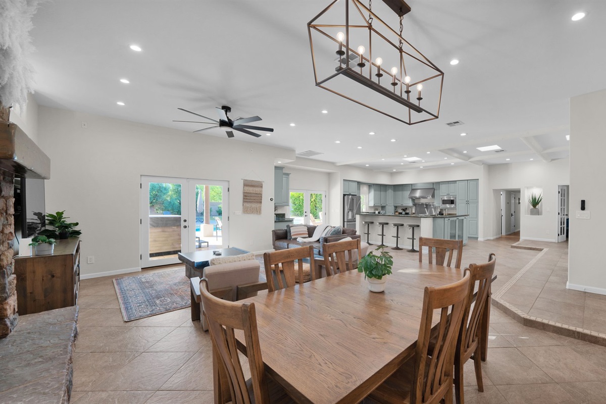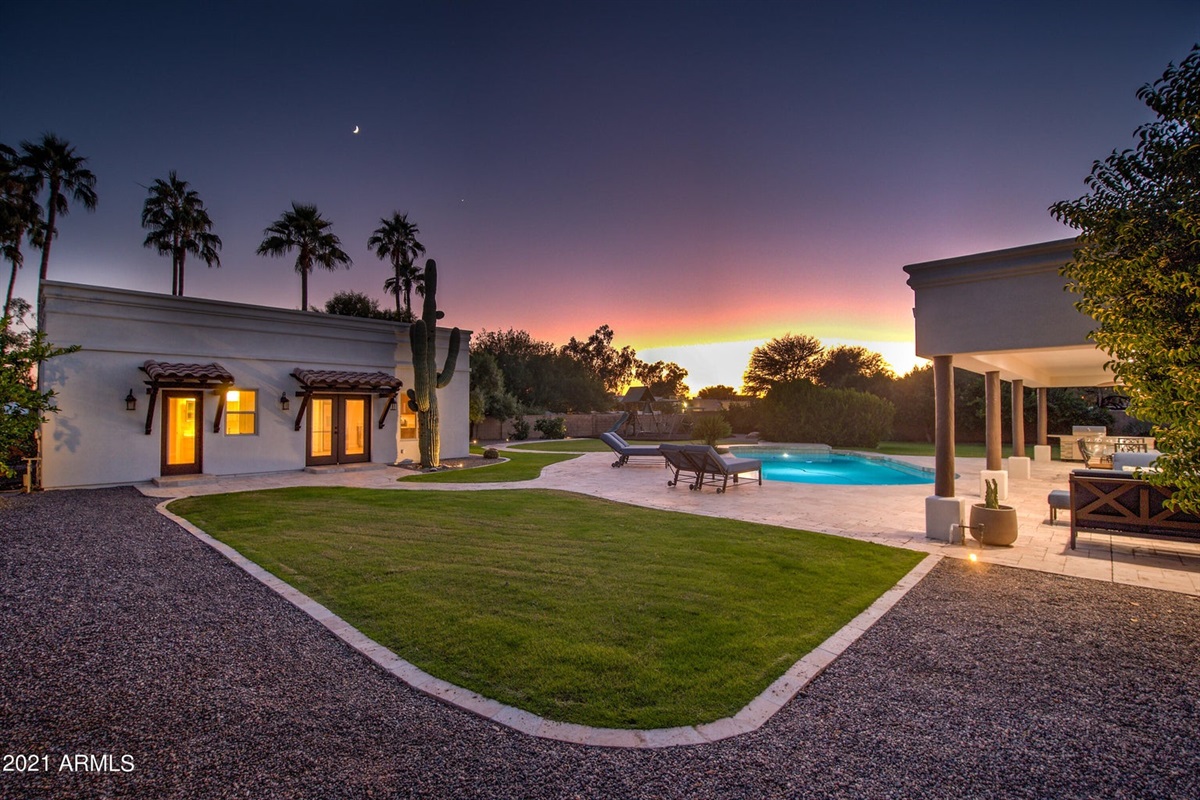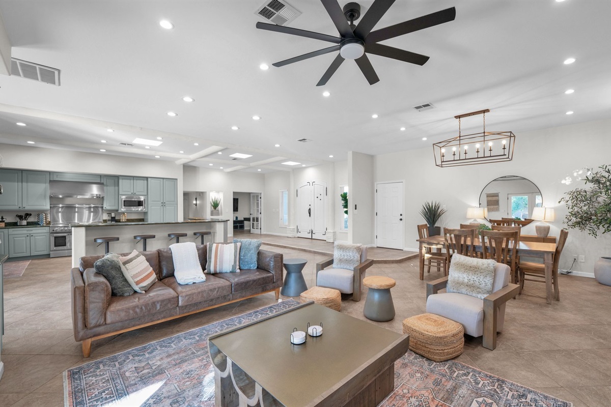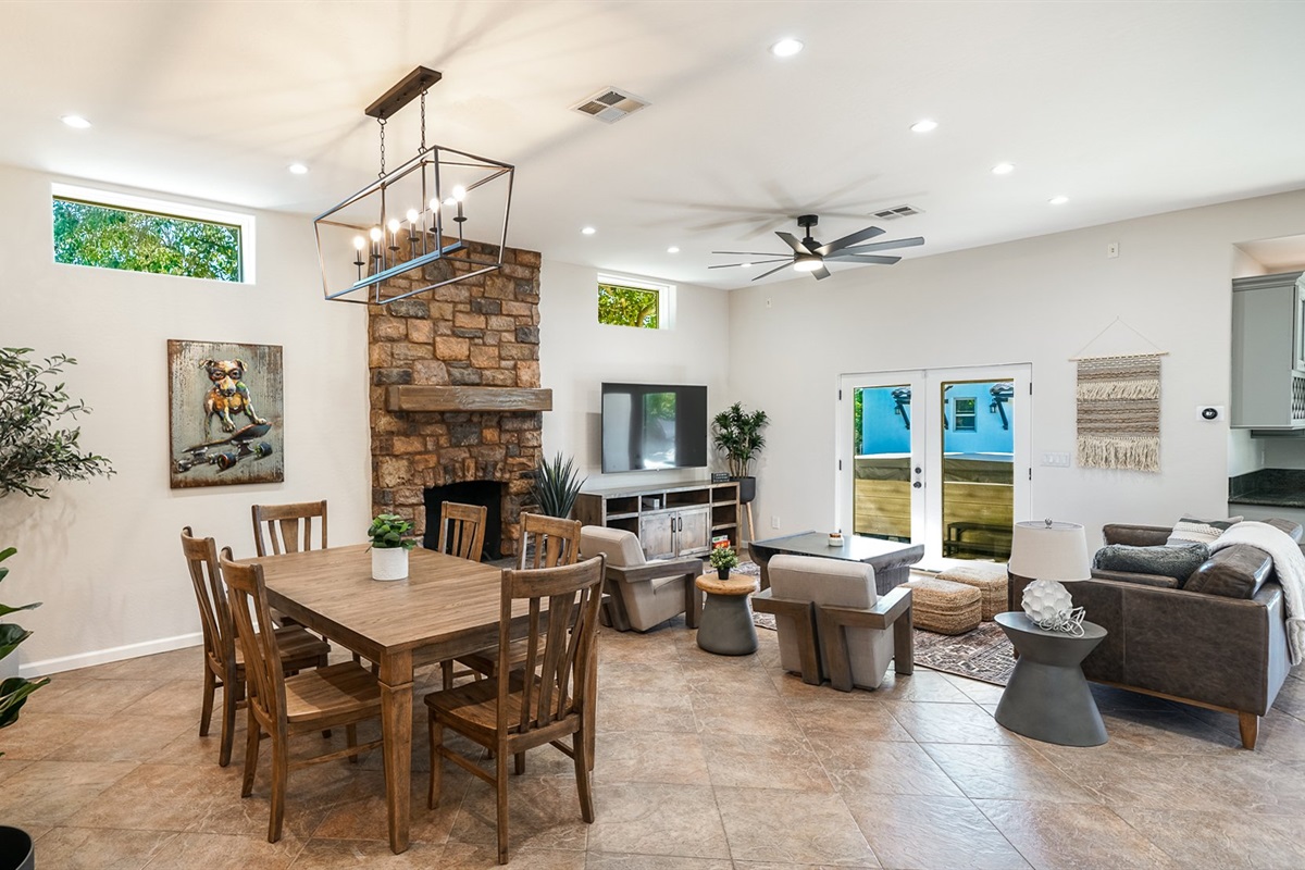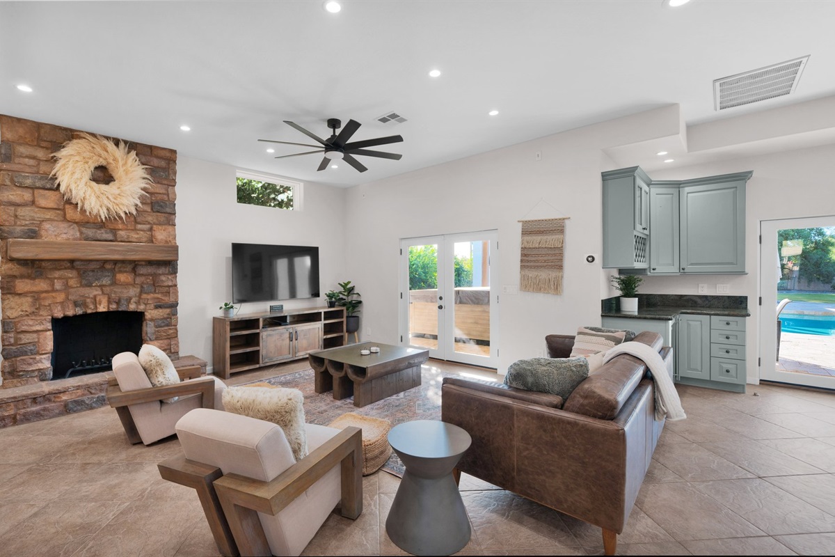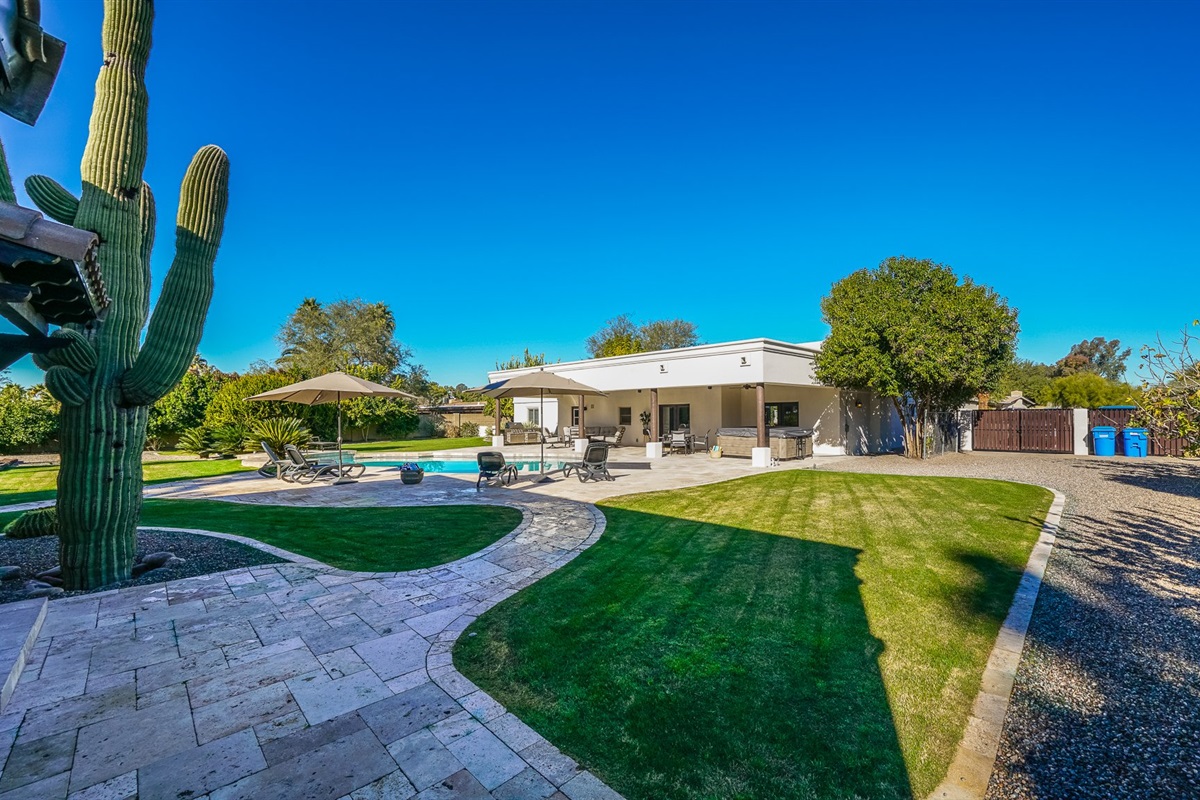 The backyard is tastefully equipped with new high-end patio furniture, large BBQ grill and a kids play area that includes a slide, swings, and monkey bars.