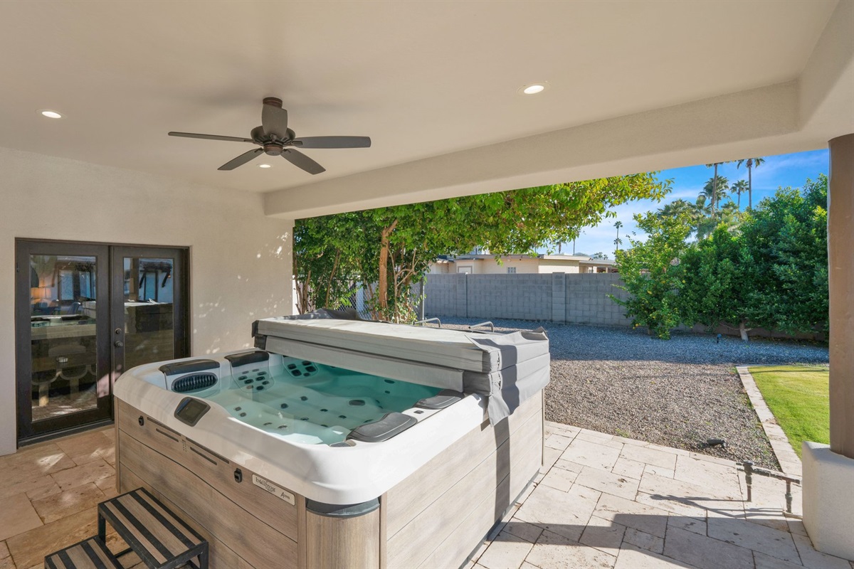 Relieve your pain, soak away your stress or reconnect with friends and loved ones in a premium hot tub by Bullfrog Spas. The large pool can be heated for an additional fee (please inquire).