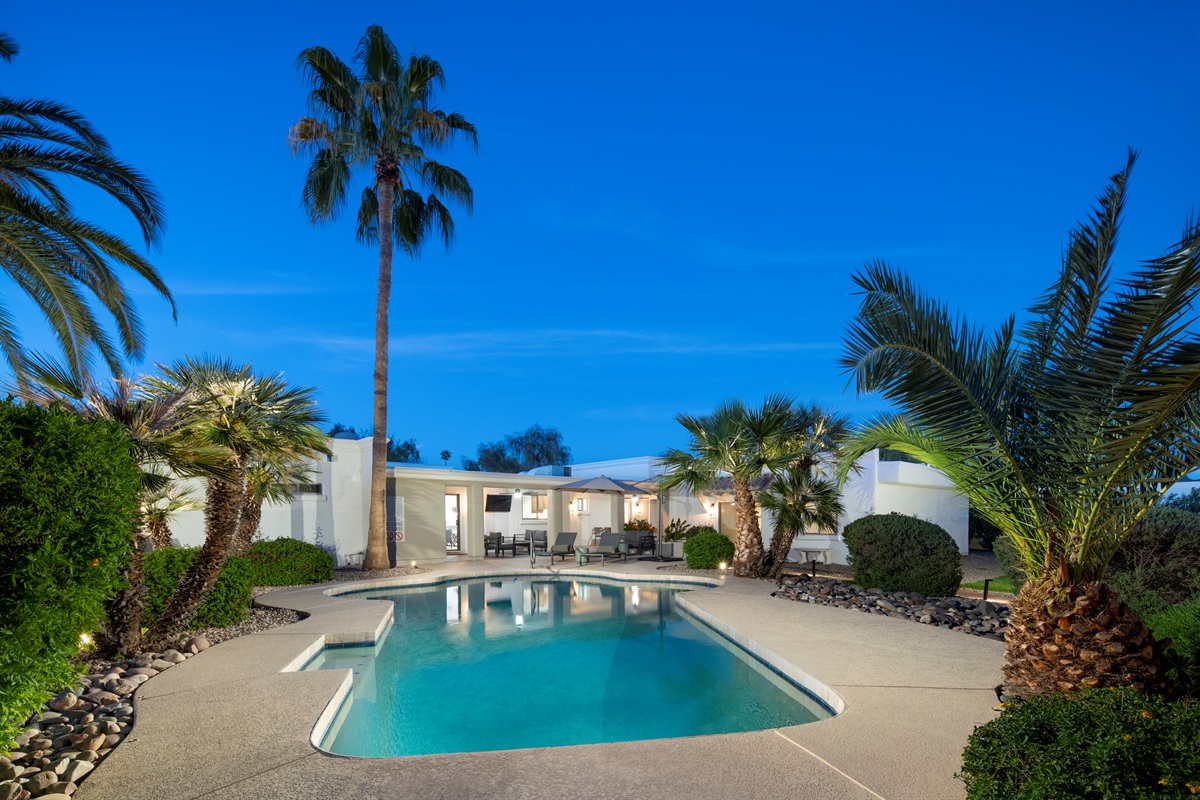 Nestled between N. Scottsdale and downtown Scottsdale, our luxurious Kierland retreat offers ultimate convenience and classic Sonoran style. This stunning home features a 2,700 SF main house + 800 SF guest house. Both were recently restyled for detail and comfort, ensuring an unforgettable stay for large get-togethers, families, golf lovers, and desert enthusiasts alike. Located in a quiet cul-de-sac and just 1.5 miles to Scottsdale Quarter and Kierland Commons for luxury shopping and dining.