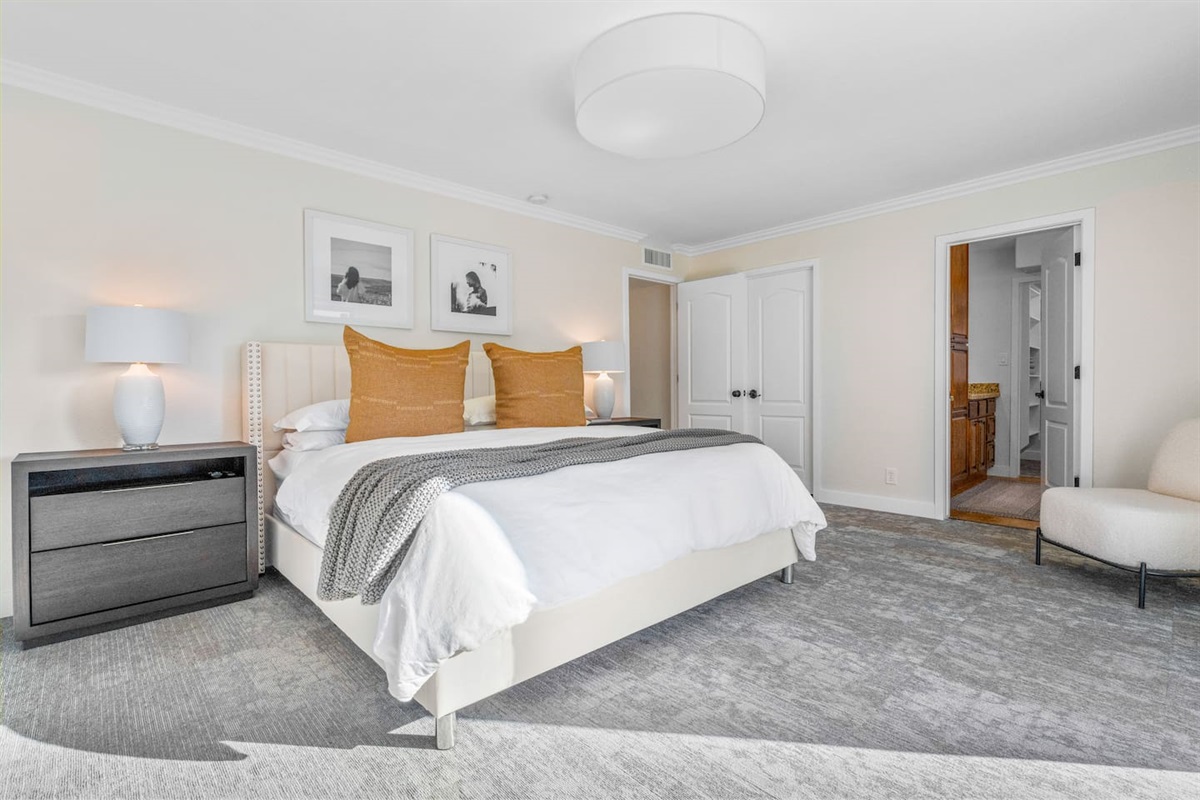 -Primary Suite: King-size bed with en-suite bathroom and closet